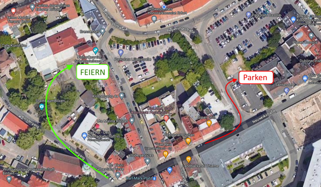 Ihr könnt natürlich kommen, wann Ihr wollt. Ein paar Parkplätze in der Nähe konnten wir organisieren. Den Weg dahin findet Ihr hier.